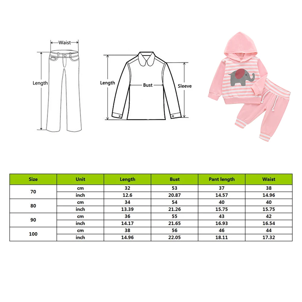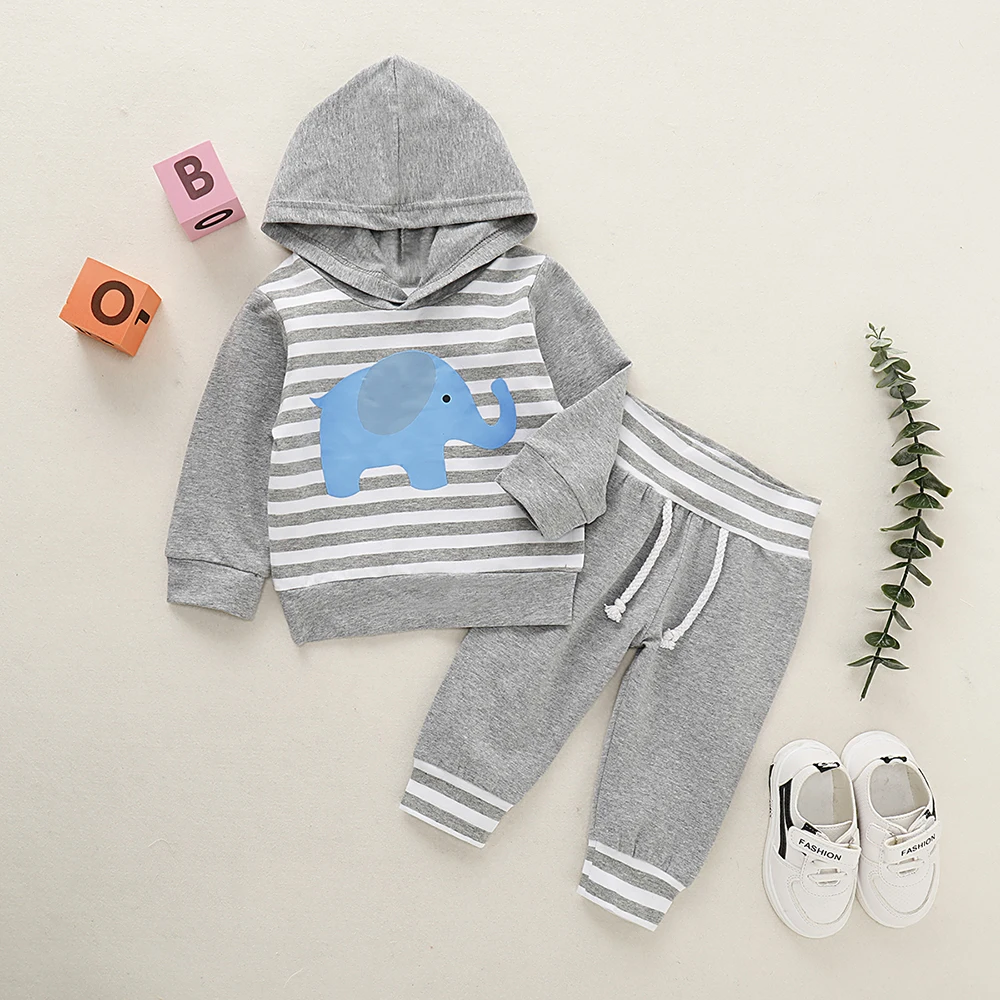 Cheap Price for Baby Boys Girls Striped Clothing Set Fashion Hooded Tops+Pants Suits Long Sleeve Cartoon Elephant N