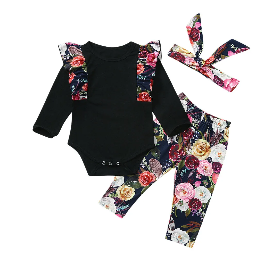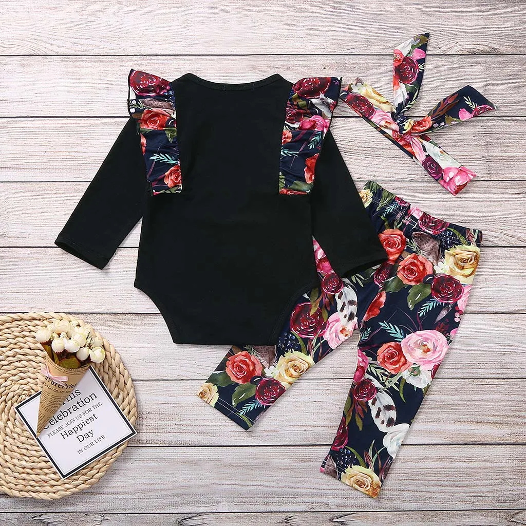 Special Chance for CHAMSGEN Autumn Newborn Baby Girl Tops Romper Floral Pants Headband Outfits Set Clothes Roupa Infan